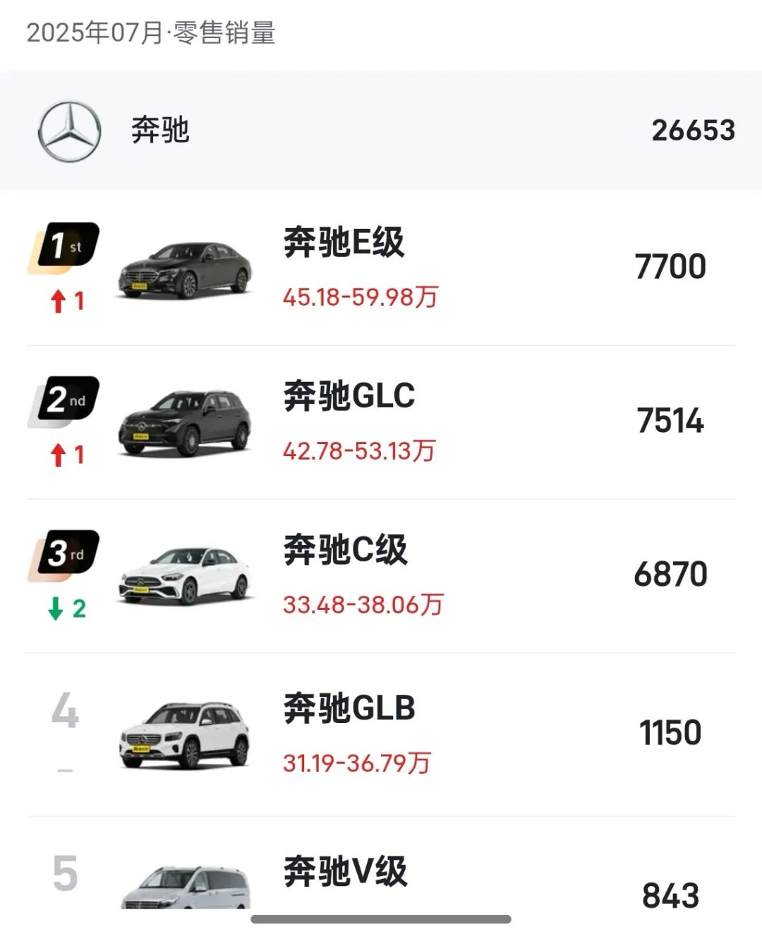 據終端零售銷量數據,不包括進口車型,奔馳在7月份賣出26653輛新車,環比跌超40%,同比跌超46%。這輪暴跌北京奔馳自然站在風暴眼,全系沒有一款車型銷量破萬,源Auto將數據往前翻3年都沒能找到先例。