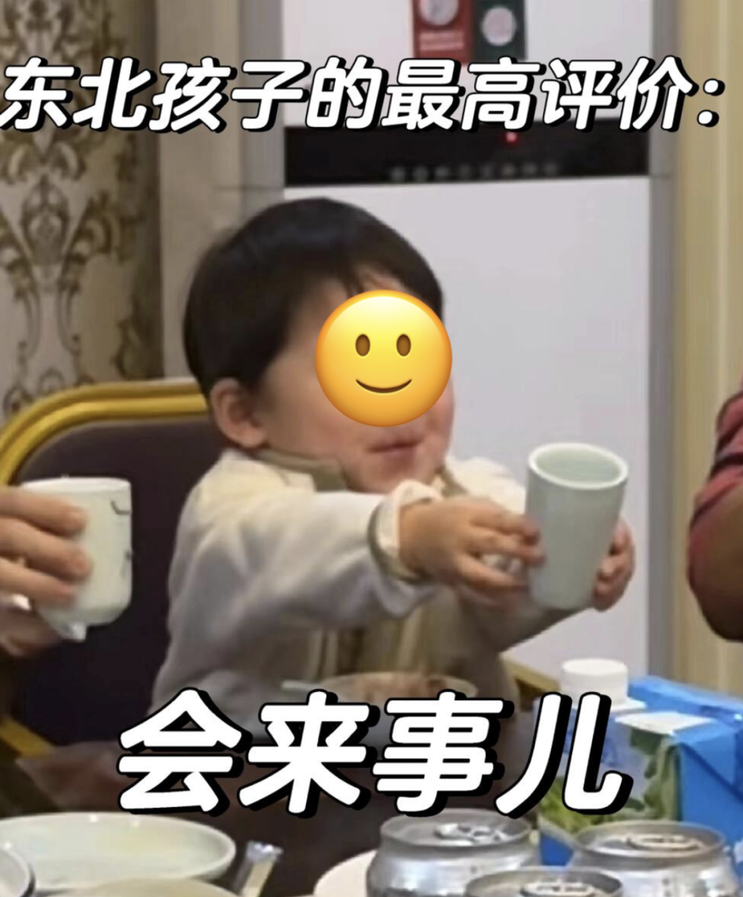 當南方孩子在宴席上如坐針氈時,東北小孩則早將祝酒詞順口溜整得明明白白,舉起果汁、茶杯,便開始挨個向長輩們問好,末了,還不忘來一段總結髮言。