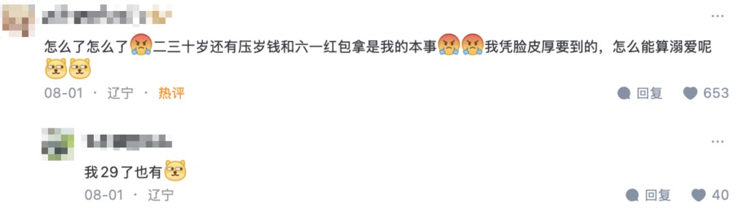 在南方,大部分孩子一旦年滿18歲或踏入職場,便不再有過年紅包,甚至需要給晚輩發壓歲錢並給長輩發添歲錢。可在東北,即便你三十而立,仍是所有長輩眼中的孩童,能夠心安理得地拿到壓歲錢和六一紅包。