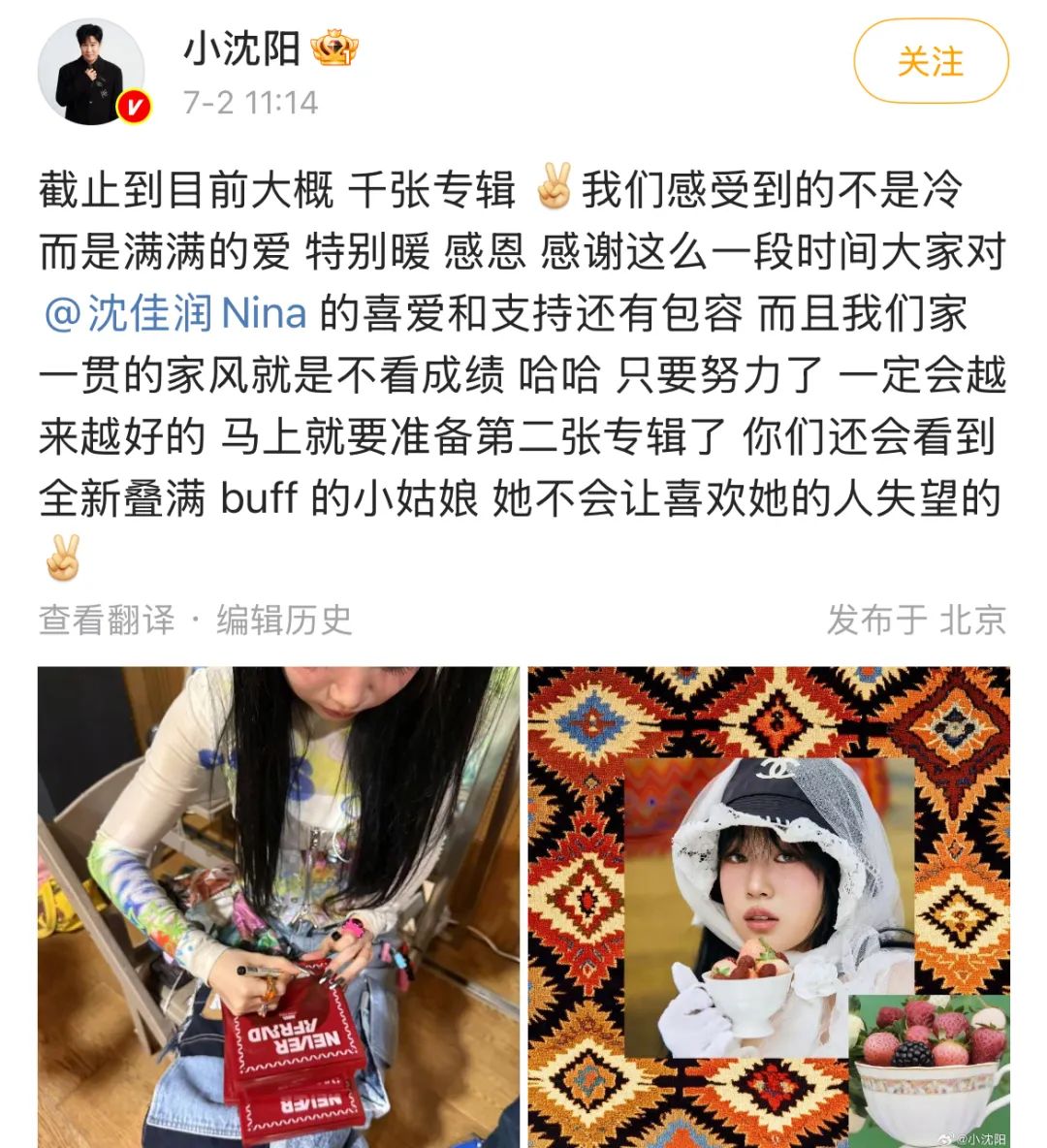 和風細雨的鼓勵背後,人們還發現小瀋陽濃到極致的父愛。他不懂韓文,仍會努力學唱女兒的歌曲,並時不時在直播間與演唱會現場翻唱,只希望聽眾能支持一下自家女兒。