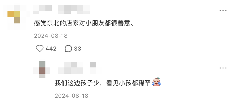 在其他地方,如果陌生小孩突然向正在吃東西的大人伸手,可能會得到一個冷眼,但在東北,對方不僅會把手上的零食給娃兒,還會敞開行李,像招待客人一樣招呼孩子。