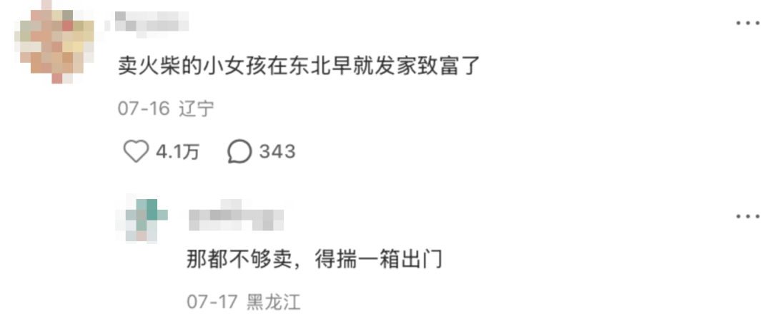 之後,也有其他東北幼崽模仿該女孩賣冰棍兒,結果剛出攤,就被一羣東北大姨搶購一空,她們不僅擔心小孩兒賣虧了,還警惕地問她認不認識不遠處緊跟着的大叔,得知是她爸爸後方才放下心來。