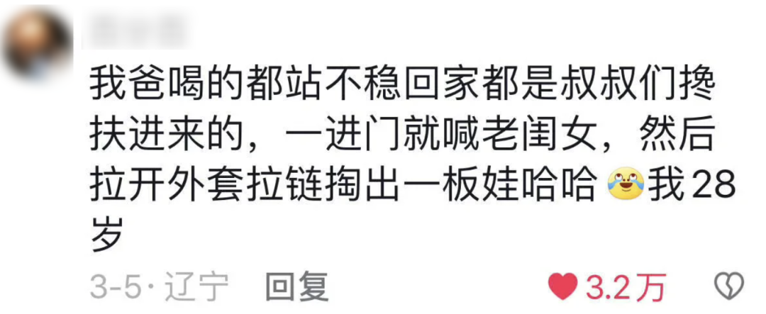 有東北女孩説,她剛開始上班的時候,老爸放心不下,每天都要像接送幼兒園小孩一樣接送已經20多歲的她。後來去南方工作,離家甚遠,每次回東北老家,整個家族都要“傾巢而出”,趕來接風。