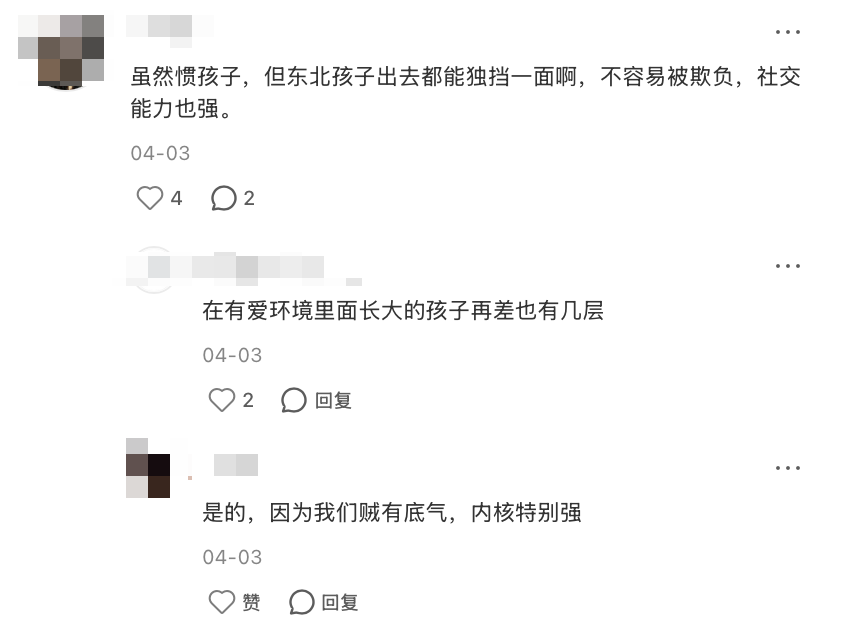 可以説,東北家長或許不會給予孩子功成名就的壓力,但大都希望孩子足夠闖蕩,活得勇敢、大方一些。