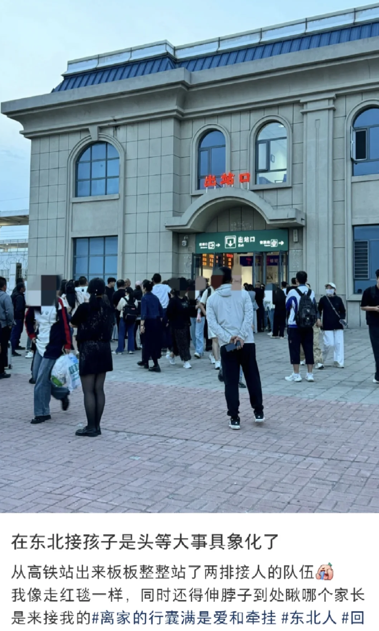 她的情況並非孤例,其他東北網友也坦言,每次走出老家的高鐵站時,出口兩邊總是擠滿了人,但他們並不是拉客的出租車司機,而是接子女的家長們。