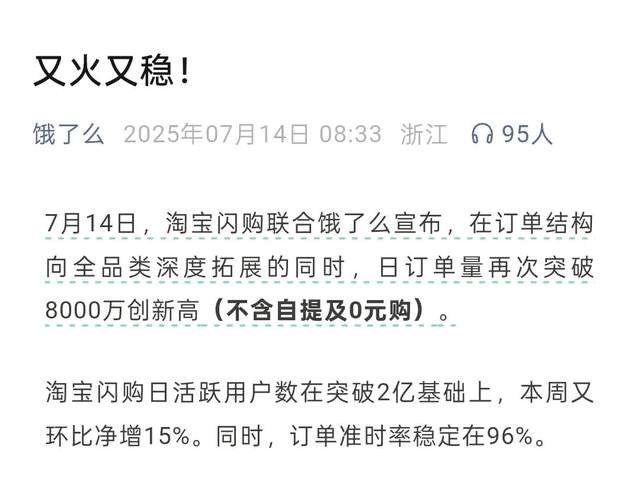 這次淘寶閃購日訂單量超過美團,也算不上美團輸給了淘寶閃購。