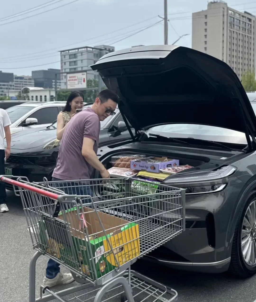 最近,李斌開着樂道L90帶老婆王屹芝到開市客購物的視頻火了。從大袋衞生紙到大瓶牛奶,從大包裝零食到滿滿一購物車的東西,全部輕鬆放入L90的前備箱。