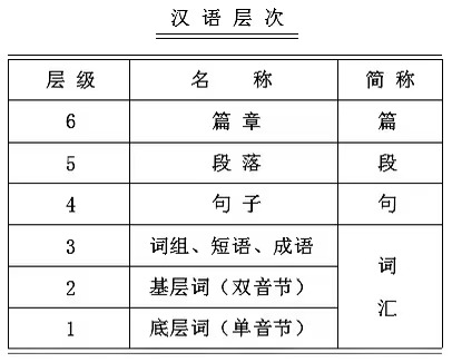 下圖是漢語六層次簡表。