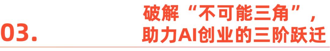 解決了這個“不可能三角”,就意味着把AI創業的堵點打通了,進而推動了AI創業企業“三階躍遷”。