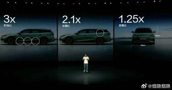 新能源時代,因為車重,底盤高度,成本等方面,大輪轂大輪徑可以“下放”給更多消費者。也就能回到輪間3個輪子左右,車高2個輪子,這樣一個較好的比例。