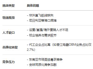 **物流瓶頸挑戰:**鄂州花湖機場雖然擁有全球領先的航空貨運樞紐,但非洲直飛航線尚未明確,主要依賴中轉,影響配送時效 。同時,非洲部分國家(如尼日利亞)存在港口擁堵、清關效率低等隱性成本,增加了跨境電商的運營難度 。