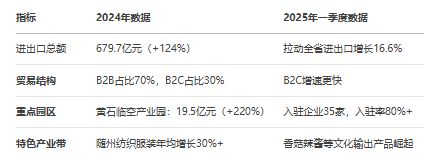 黃石臨空跨境電商產業園成為推動這一增長的重要力量,2024年完成交易額19.5億元,同比增長2.2倍 。園區已引進跨境電商及生態鏈企業35家,入駐率超過80%,力爭年內實現滿園運營 。隨州紡織服裝產業帶跨境電商交易額年均增長30%以上,成為湖北外貿新的增長點。