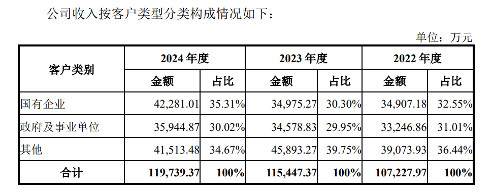 過去幾年,廣東建科重點承接大型政府、事業單位和國有企業投資項目,佔收入比例波動上漲至65.3%。其中,2022年至2024年應收賬款及合同資產前三十大項目中,合同金額在300萬元以上的項目分別為20個、30個和30個。