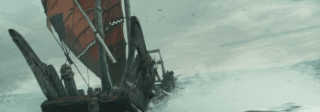 原本軒昂的大船,從船尾一側逐漸下沉,到在海水撞擊與槍林彈雨下,分裂成兩半。
