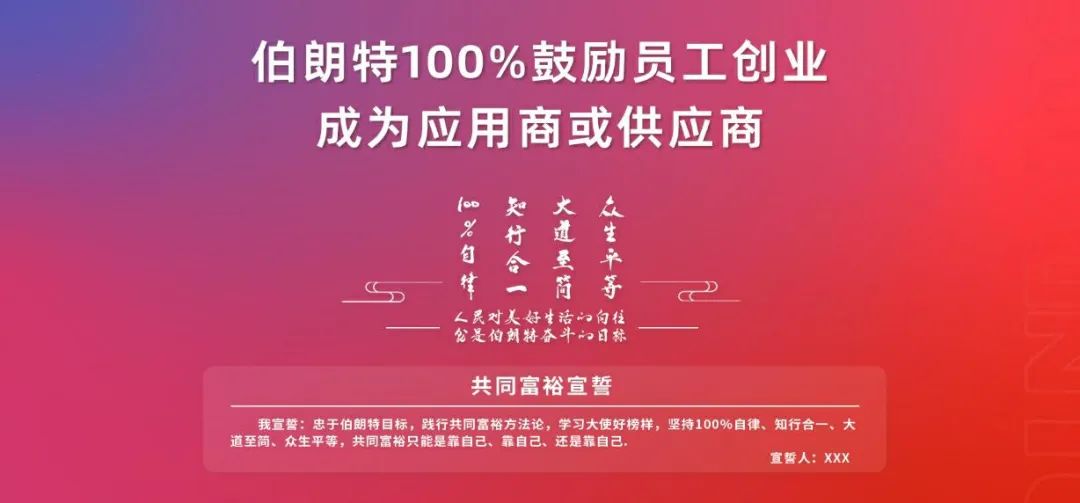 忠於伯朗特目標,踐行共同富裕方法論,學習大使好榜樣,堅持100%自律、知行合一、大道至簡、眾生平等,共同富裕只能是靠自己、靠自己、還是靠自己。