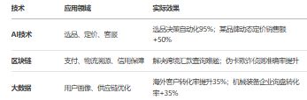 **AI技術應用:**AI技術將在跨境電商選品、營銷、客服等方面廣泛應用。**區塊鏈技術應用:**區塊鏈技術將在跨境電商信用、物流、供應鏈等方面應用。**大數據分析應用:**大數據分析將在跨境電商市場洞察、用户畫像、供應鏈優化等方面應用。