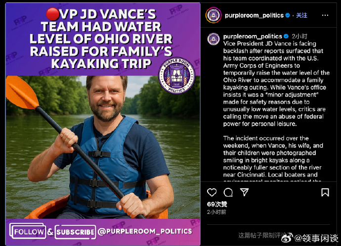 防權利濫用如防洪!JD萬斯繼讓陸軍工程兵團為其划船提高水位後又獨享整個迪士尼樂園_風聞