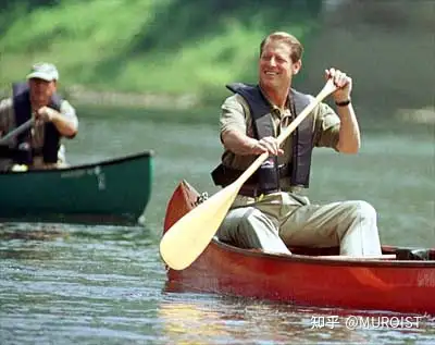 1999年7月23日,時任美國副總統、2000年總統大選民主黨候選人的戈爾來到新罕布什爾州奧茨茅斯參加競選活動。在各大媒體長槍短炮的層層包圍下,身穿卡其褲和POLO衫的戈爾在康涅狄格河上划起一支獨木舟,以示其陽光、親民、環保的形象。
