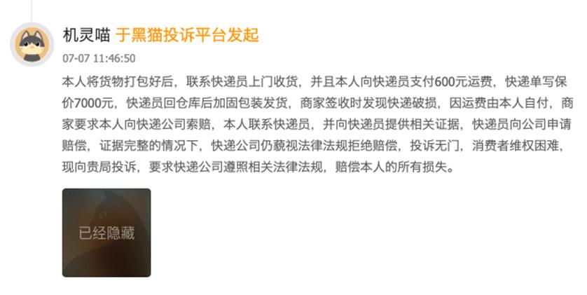 比如,2025年7月7日,一用户就投訴稱,自己將貨物打包好後,聯繫百世快遞的快遞員上門收貨,向快遞員支付600元運費,保價7000元,快遞員回倉庫後加固包裝發貨。結果,商家簽收時發現快遞破損,遂聯繫快遞員,提供相關證據,向百世快遞申請賠償。證據完整的情況下,百世快遞卻藐視法律法規,拒絕賠償。