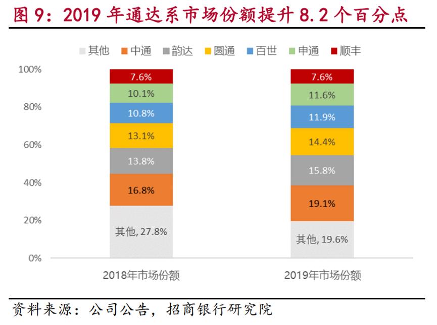 招商銀行研究院統計的數據顯示,2019年,百世快遞份額為11.9%,一年後跌至10.2%。南方都市報測算,截止2021年Q3,百世快遞的份額已低於5%。