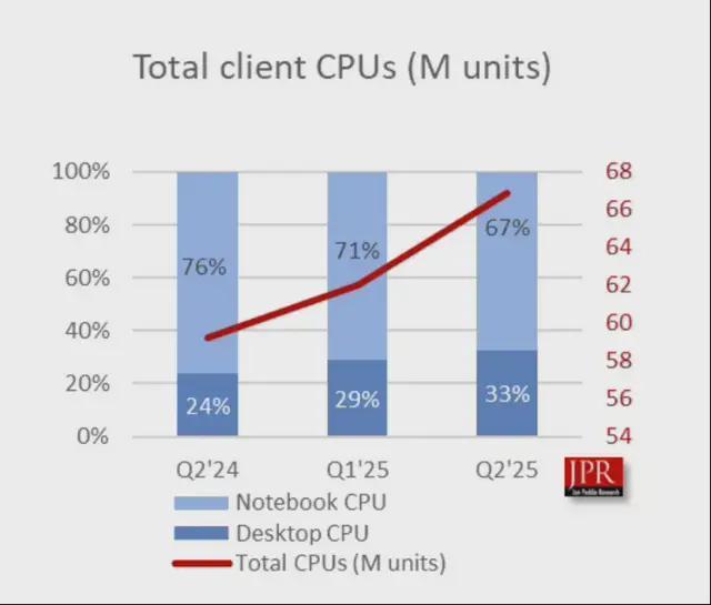 JPR:2025年Q2全球客户端CPU出貨量同比增長13%_風聞