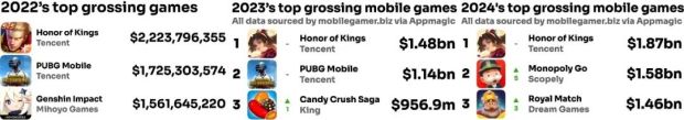 《王者榮耀》登頂這事到底有多「普通」呢?據AppMagic,《王者榮耀》是今年上半年唯一一款營收破十億美元的手遊;過去三年,它還實現了全球手遊營收的三連冠;更炸裂的是,作為體量巨大的國民遊戲,《王者榮耀》2024年營收竟還能同比增長26%。