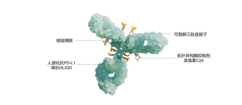 HLX43是一款靶向程序性死亡-配體1(PD-L1)的新型ADC候選藥物,由公司自研的全人源IgG1抗PD-L1抗體,與宜聯引進的創新連接子-拓撲異構酶抑制劑荷載偶聯而成,藥物抗體比(drug-to-antibody ratio, DAR)約為8。
