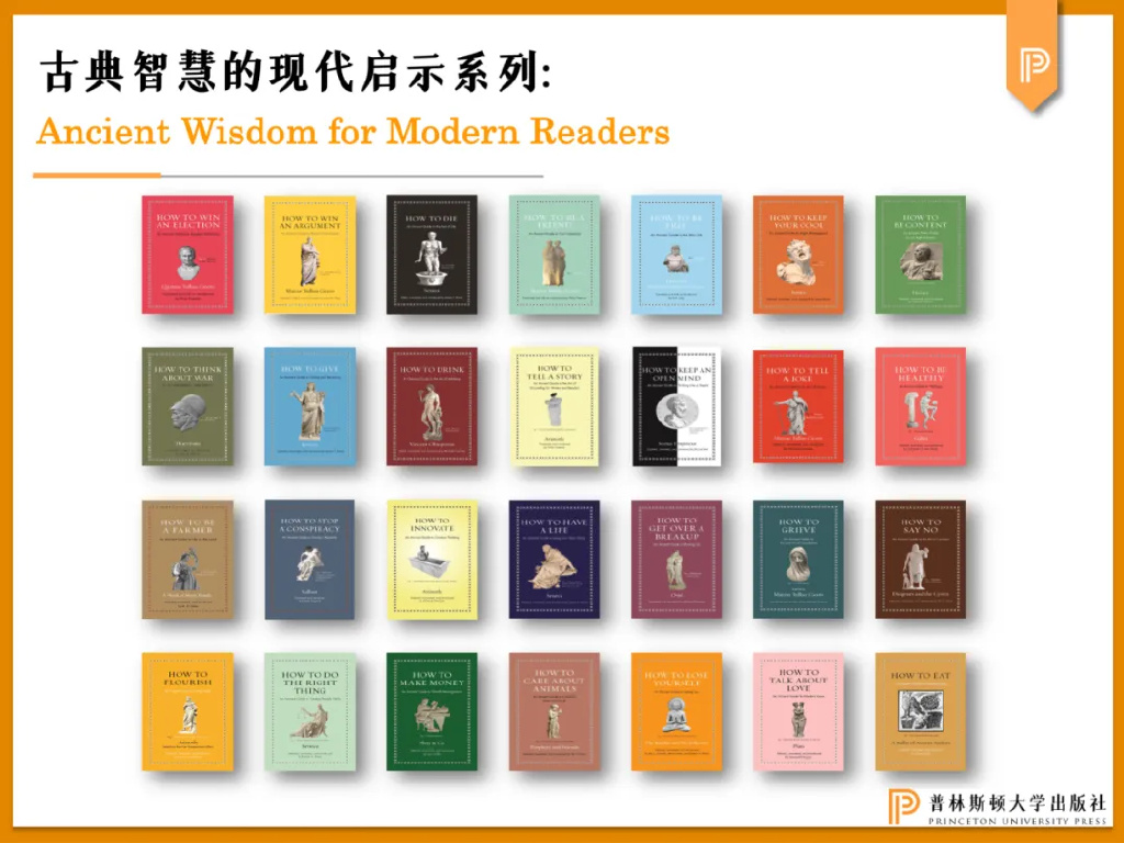 Ancient Wisdom for Modern Readers 系列是普林斯頓大學出版社的經典套系之一,其所含書目標題均以“How to”開頭,以生動易讀的新譯本呈現了古典思想家們永恆而又極富現實意義的思考,兼具啓發性和娛樂性,使古典世界的實用智慧在現代生活中繼續幫助人們解決困惑 。自2012年以來,該套系至今共出版41本書目(含待出版),內容豐富,跨度極廣。從如何選擇人生方向、如何獲得幸福與自由、如何看待衰老與死亡這樣的大問題,到如何用論辯説服他人、如何發揮領導力這樣的實用技巧,再到如何做一名農民、如何飲酒等讀來令人不禁莞爾的“冷知識”,這套叢書都能提供來自古典時代的智慧與解析。