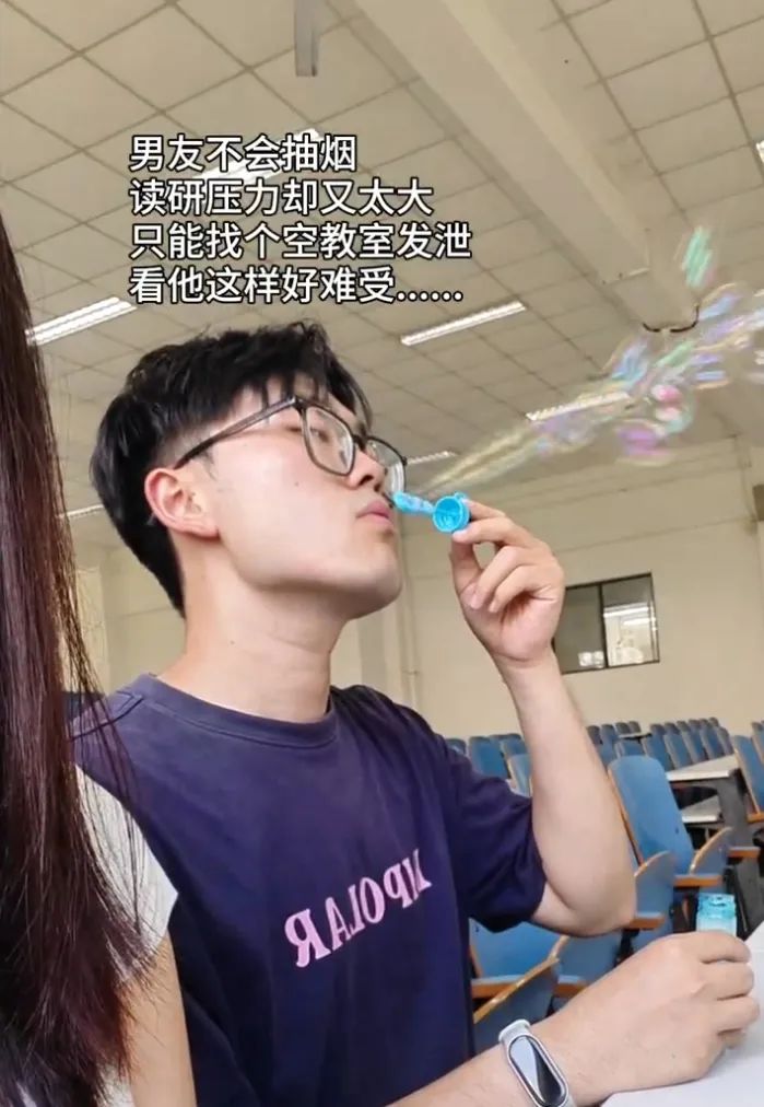 叼奶嘴之外,近期**“吹泡泡”**也成了互聯網解壓熱門內容,在這些一臉愁容的吹泡泡視頻當中,除了各有各的焦慮緣由,幾乎所有人都把“不會抽煙,只能吹泡泡”的文案放在了上面。