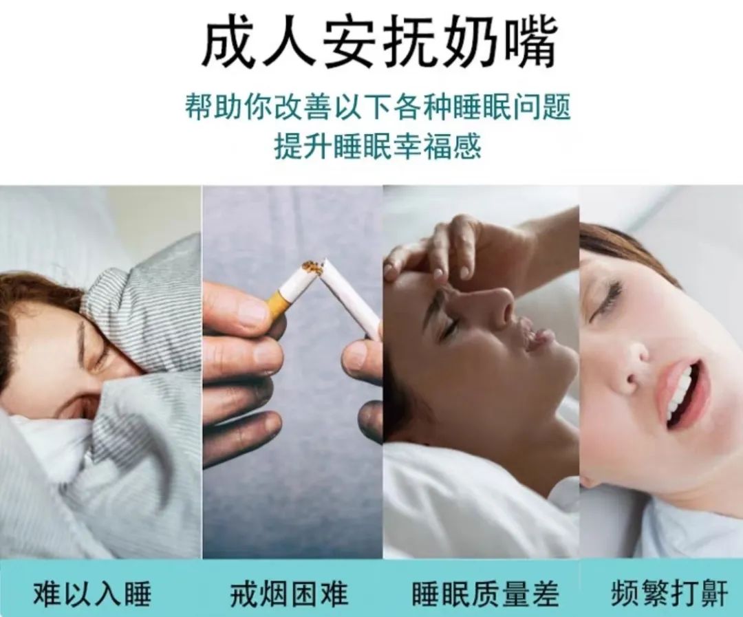 能想出緩解失眠焦慮暫的宣傳功效,暫且都還能算作“產品效果因人而異”之下的營銷手段,但很多成人奶嘴產品直接加上了“輔助戒煙”、“幫助戒零食”、“防止夜間磨牙”等離譜功效,簡直就差納入**“醫療輔助器械”**了。
