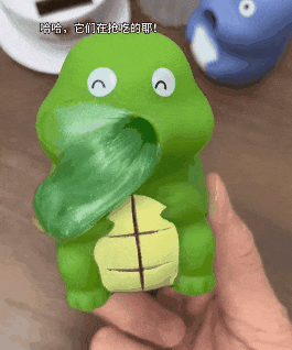 流沙質感的膠黏解壓玩具常有,但能**“交叉互食”**的玩具可不常見,既能自己吸進去吐出來,還能讓兩個容器玩偶之間互喂互食,焦慮得以清除,吃的午飯也吐出去了。