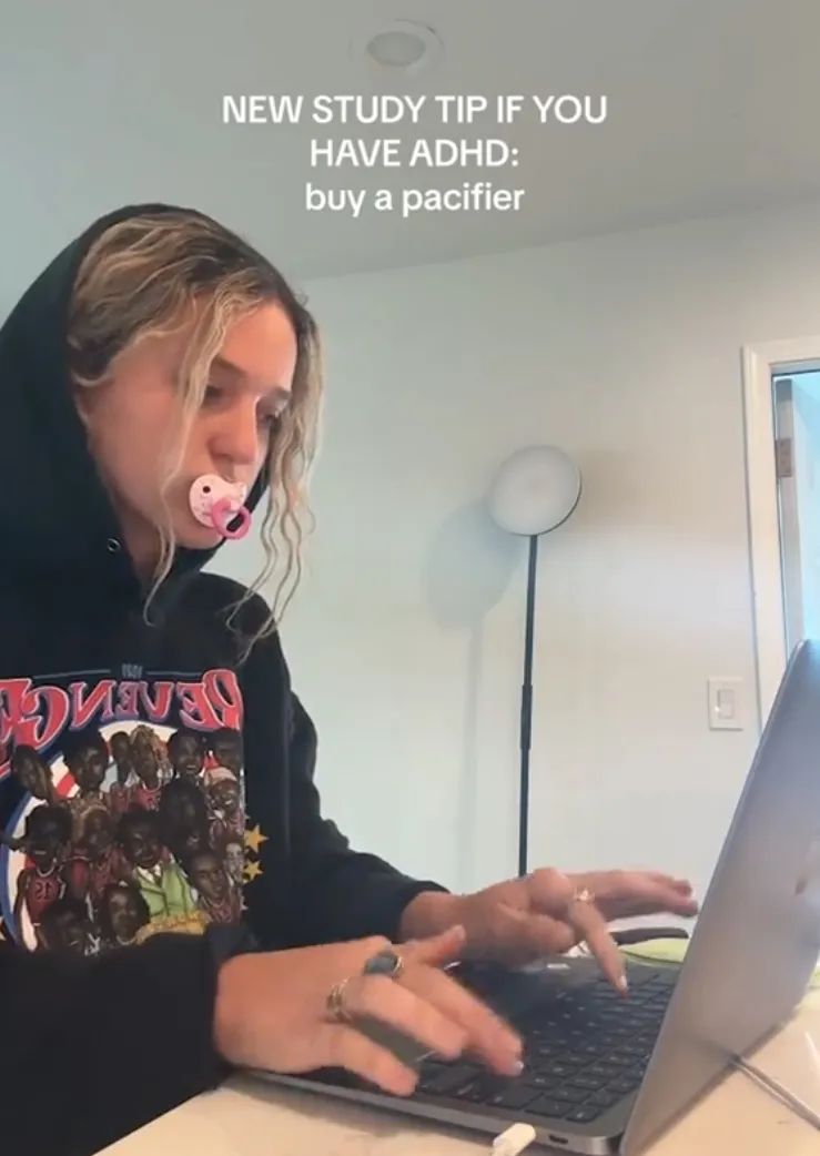 睡前玩手機含着、看書寫作業含着、上班焦慮了偷偷跑角落裏含着、還有主播邊跳舞邊含着,前有“賽博奶頭樂”硬控精神領域,後有“現實大奶嘴”唑上了癮,齊活兒了。