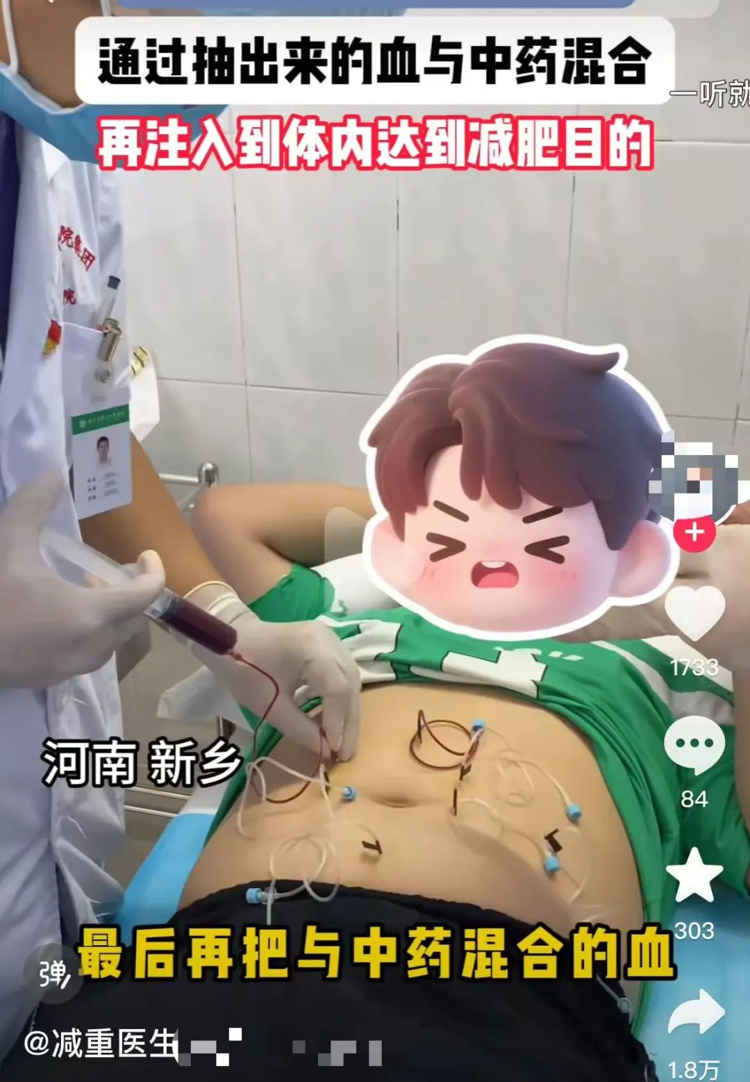 然後今天刷短視頻,看到個認證為河南某市減肥醫生的博主,分享了一個更狠的,叫“埋線減肥自血療法”。