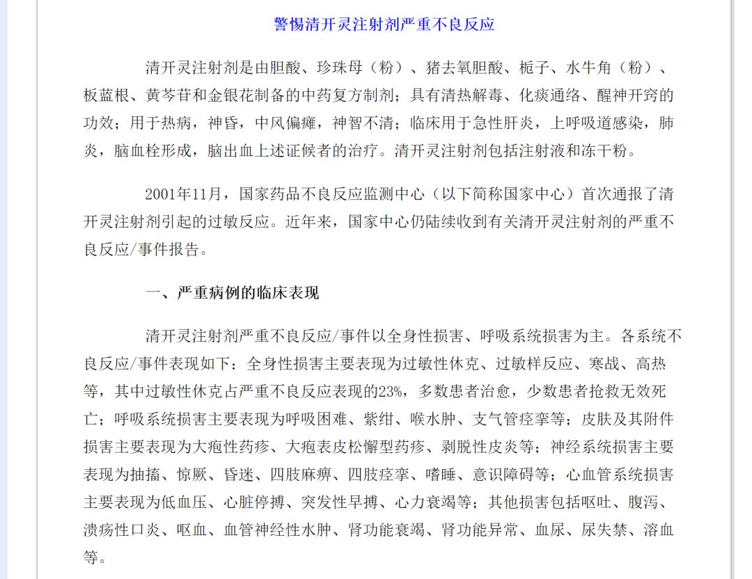 這些注射液中的雜質大分子極容易造成嚴重不良反應,乃至於藥監局很多次發佈報告,警告、限制中藥注射液的使用: