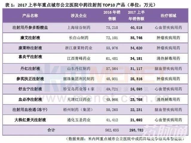 更魔幻的是,這還遠遠算不上我國最大的中藥注射劑,最多隻能排前五。根據米內網的一份數據顯示,僅2017年上半年全國重點城市公立醫院,就有超過5種注射劑銷售額破3億人民幣。