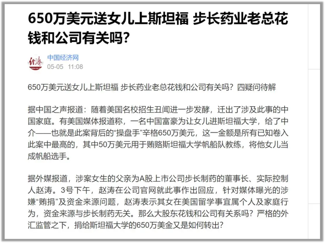 僅2013年一年,因為中藥注射液造成不良反應的數以萬計,其中嚴重不良反應都破萬,然而,中藥注射液在中國的產值依然破億,曾經的“山東首富”依然可以一邊做着中藥注射液的生意,一邊花650萬美元,把女兒送到斯坦福念大學: