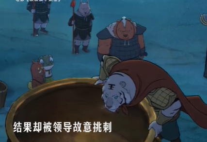但在《浪浪山》裏,為了討好領導,小野豬主動跳進銅鍋裏,用自己的毛刷鍋,最後也還是把自己的毛刷禿了。