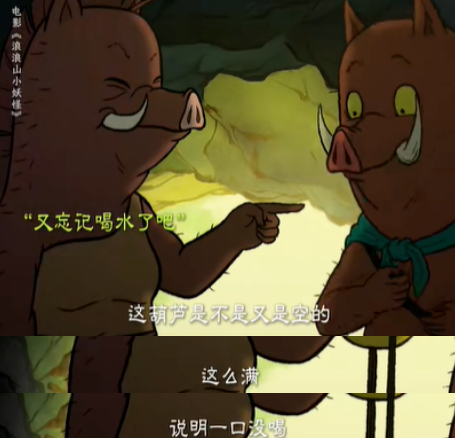而這一處是在call back短片《小妖怪夏天》裏,小野豬為了湊夠一千斤柴火,在山裏打劫砍柴人。
