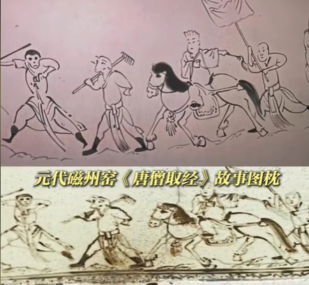還有元代磁州窯“唐僧取經”圖的瓷枕。