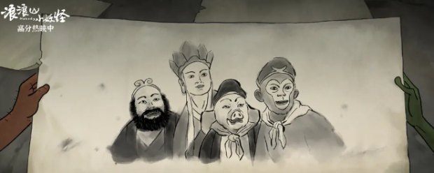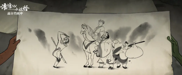 2023年《小妖怪的夏天》裏小野豬幻想中的“唐僧師徒”。