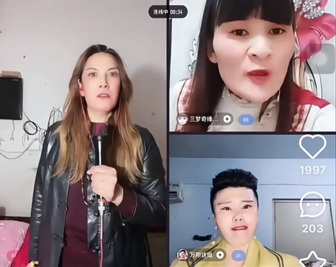 在視頻裏,她自稱來自俄羅斯,講着半生不熟的中文,張口閉口“很喜歡中國文化”,聊一些熱愛和平的熱點話題,高喊“達瓦里希”(俄語同志們),時常對口型唱幾首經典老歌,迅速拉近了與中老年網友的距離。