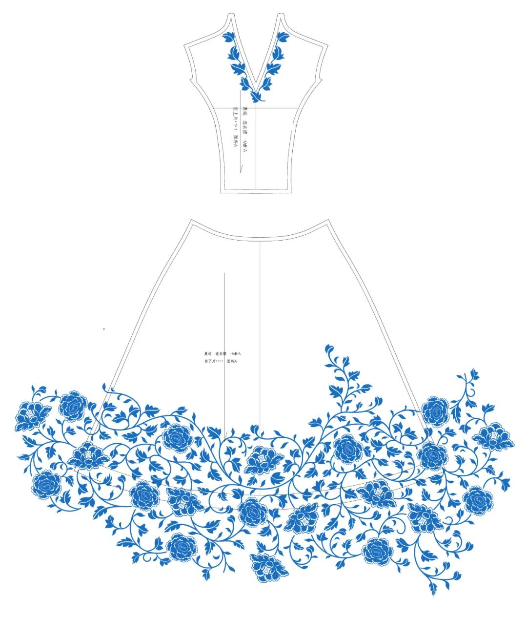 而設計師在裙門部分加了粵繡風格的邊飾,可這些圖案卻在裙褶處戛然而止。