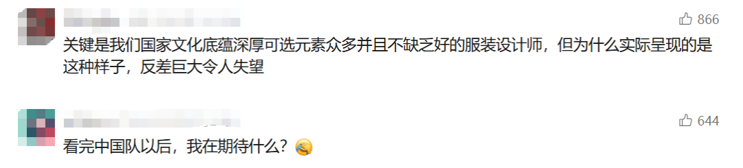 中國隊的服裝似乎總在傳統與現代之間反覆橫跳,鮮有令人眼前一亮的作品。