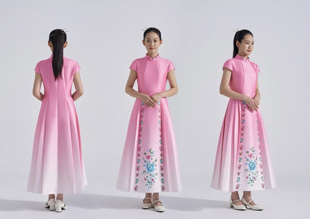 男士襯衫採用小立領盤扣設計,女士裙裝則改良自旗袍和宋代服飾。