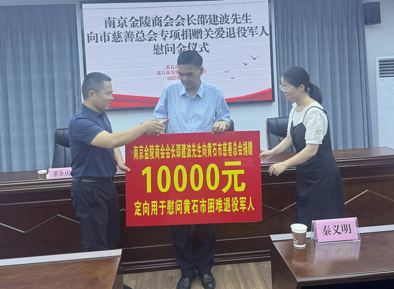 為紀念中國人民抗日戰爭暨世界反法西斯戰爭勝利80週年,弘揚愛國主義精神,營造尊崇軍人、關愛退役軍人的濃厚社會氛圍,8月15日上午,南京廉政文化研究會、南京金陵商會聯合黃石市關愛退役軍人協會、黃石市慈善總會共同舉辦“致敬抗戰老兵•關愛睏難戰友”慰問活動。活動包括捐贈儀式及走訪慰問困難退役軍人家庭,傳遞社會温暖與敬意。