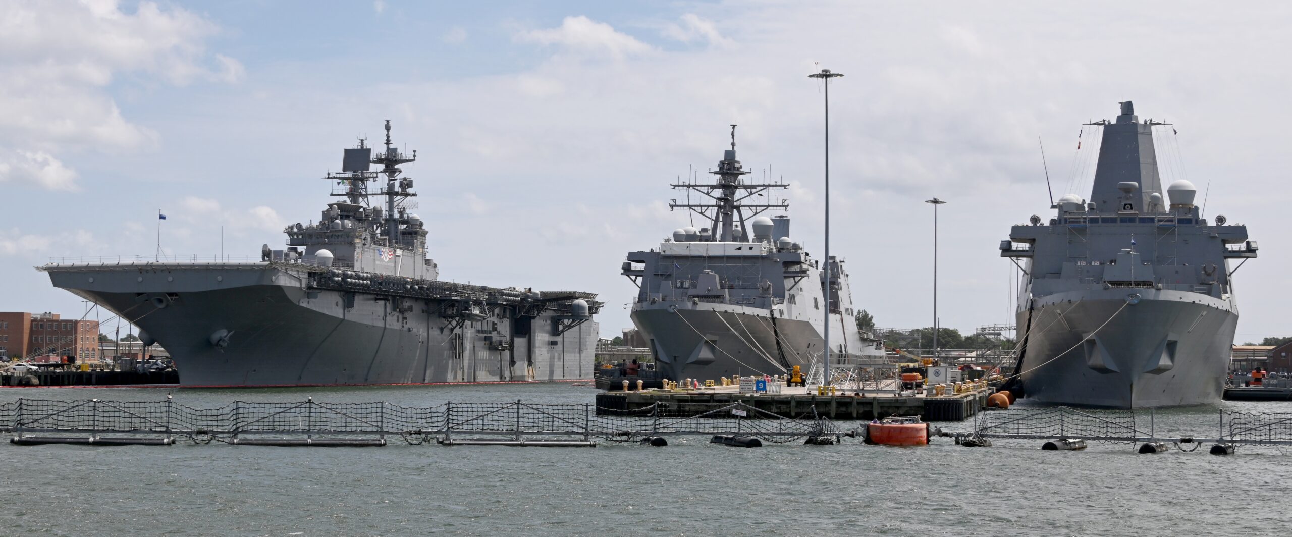 2025年8月2日,“硫磺島”號兩棲攻擊艦(LHD-7)、“勞德代爾堡”號船塢運輸艦(LPD-28)和“聖安東尼奧”號船塢運輸艦(LPD-17)。