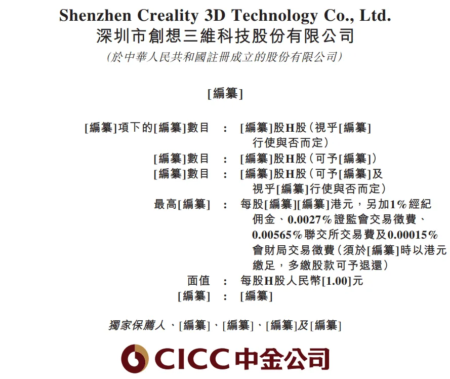 據港交所8月14日披露,深圳市創想三維科技股份有限公司遞表港交所主板,中金公司為獨家保薦人。