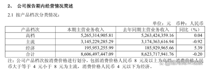 據瞭解,公司營收主要受到主流產品拖累。在高檔產品及經濟產品均實現收入上漲的情況下,主流產品營收減少0.92%拖累產品總收入減少0.20%。