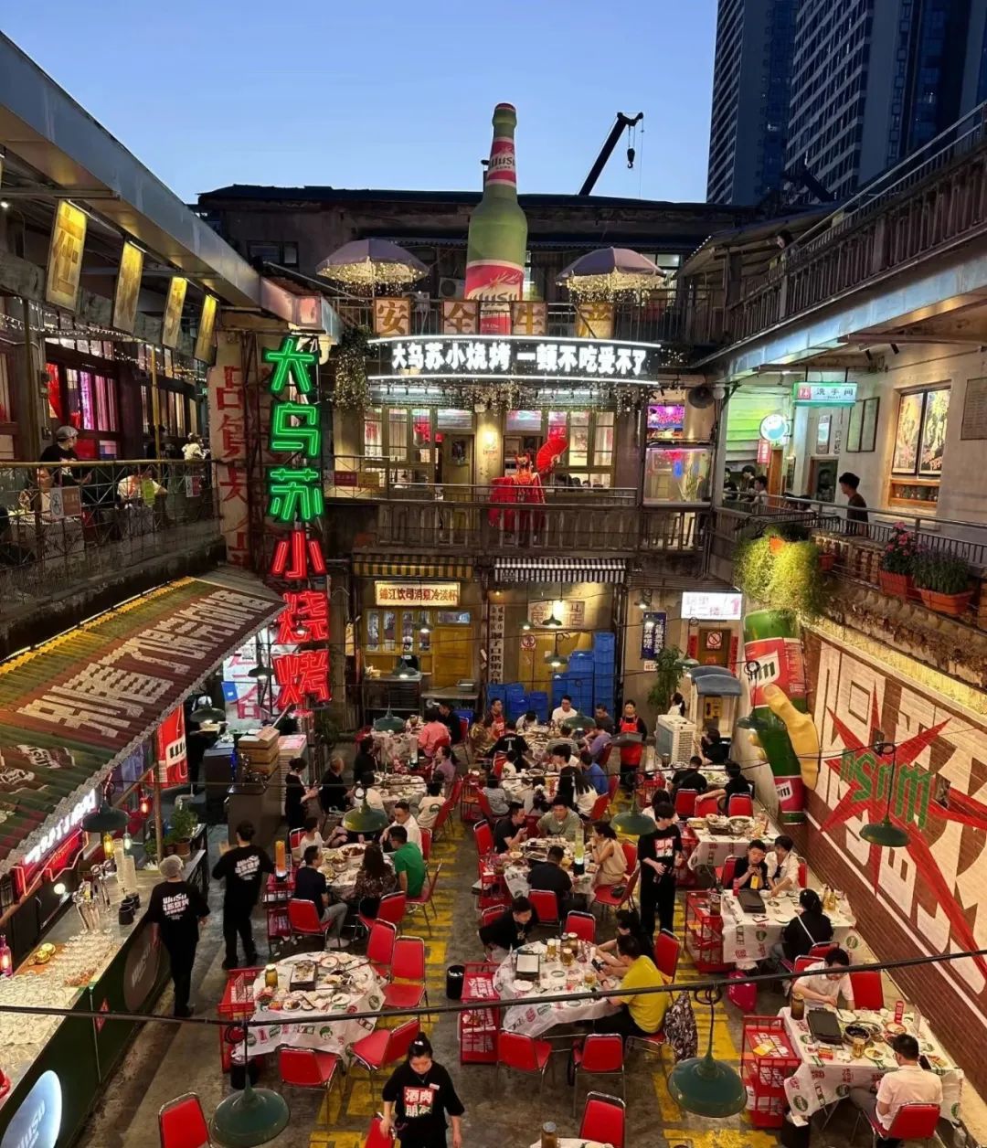 再拿烏蘇燒烤的5000方宵夜城來説,牟建説,要尊重當地的美食IP,把本土的文化,本土的小吃,本土的風土人情,把真實的吆喝聲、市井煙火放一起,真正變成一個四川小吃集的場子,這是經營方向之一。