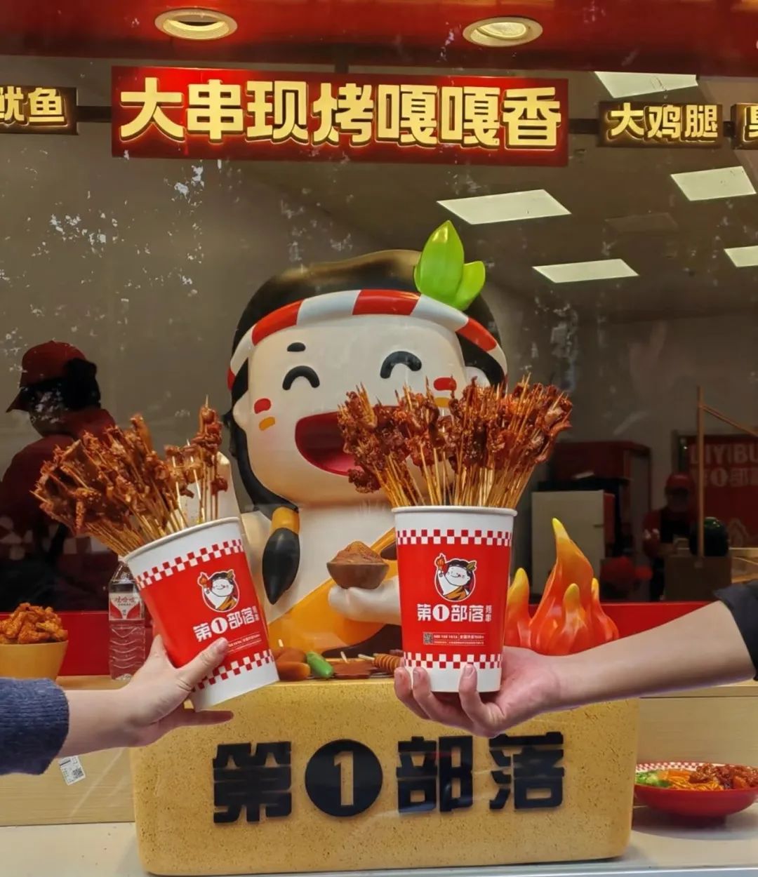 第一部落烤串把第一部落定義是街邊烤串,便利打包帶走,針對年輕人羣體需要更新速度快的特點,10平方到20平方的門店太小,夏天太熱,冬天太冷,這些都是痛點。